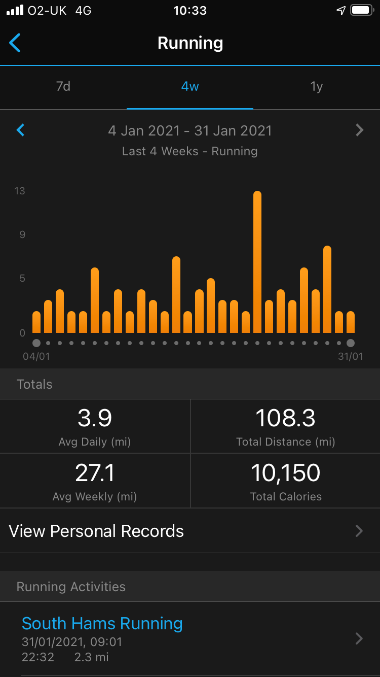 I had already committed to running at least four times a week for January until I glanced at an Instagram post from a friend. He wrote: “I am going to aim to run every single day in January…[blah, blah, blah – my words, not his]. Tempted to give it a try?” Damn you and thank you George! I did just that. George and his wife Rachel opted for at least 10k a day. I say at least because they chucked in a casual marathon in January too. They are amazing. I live in constant awe of their attitude and ability.