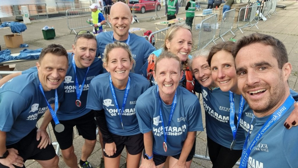 I wasn’t the only one from Kingsbridge who had signed up for the Exeter Marathon. Nine of the 190 people who took part were known to me. We made up almost 5% of the start list! Rachel offered the local crew a lift to Exeter in their van – the fun bus – and it was then I realised I may be on the wrong bus! Of the seven on the bus, six had taken part in The Royal Marines Iron Challenge, with the tagline “Where iron becomes steel”, in September. They had attempted a 2.4-mile sea swim, a 112-mile bike ride and a coastal marathon that included more than 3,500 metres of climbing! The only one who was not an ironman competitor was me. WHY WAS I ON THIS BUS? IT’S NOT SLOW ENOUGH!