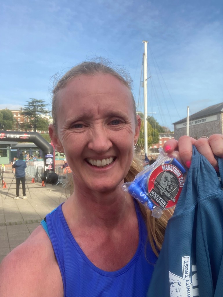 The pandemic meant the April date was delayed to November, so I choose to do a DIY marathon locally instead in April before signing up for the Virtual London Marathon that took place last month. That meant there were just five weeks between the Virtual London and Exeter…and I had no clue how to train in between the two! The general consensus was that I had done the training for the Virtual London and that would be enough. Meanwhile, other Exeter participants were knocking out 20-mile runs while I was still pootling about. I did a few runs around the town, my fastest alternative Kingsbridge 10k (under an hour if you are interested) and a 17k to commemorate the 17th birthday of my cousin’s son Tait, who passed away two years ago. That was it! I felt woefully underprepared but had to trust in the training I had done before.