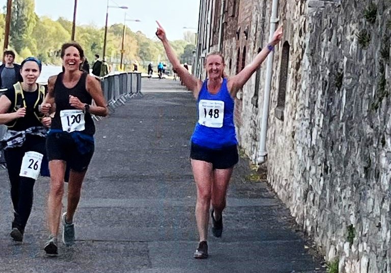 I was very much buoyed by the presence of my eldest daughter Ella, my mum and step-father, my work colleague Lucy, and my lunatic friends and families who had driven up from Kingsbridge to support the nine of us, but I still wanted to walk. As I went though the historic quay area of Exeter, I caught up with a gentleman who I spotted earlier in the race who had a very unique running style…and had just finished his second cup of tea along the way. This turned out to be my new running friend for the next seven miles. Introducing Andrew Bickle, who was running his 542nd marathon! I asked him why he was running/walking with me and shouldn’t I be running behind him as a sign of respect, but he seemed keen to chat, so we trundled along together.